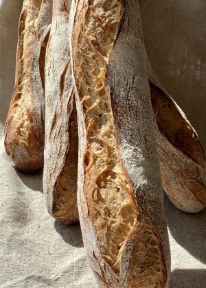 Per a l’elaboració del pa, fem servir llevats naturals de cultiu per a fermentacions lentes que obtenen com a resultat un pa de molt fàcil digestió i de gran riquesa nutricional. L’ús de ferment natural afegeix, a més, una llarga conservació del pa.